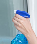 Нанесите на окно чистую воду или специальный раствор, используя распылитель.